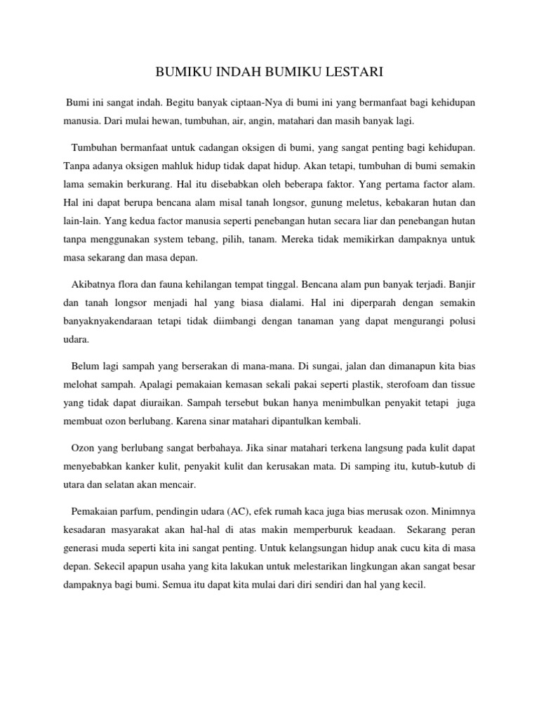 Ubahlah Puisi Bumi Tak Lagi Hijau Menjadi Teks Prosa 1 Paragraf Brainly Co Id